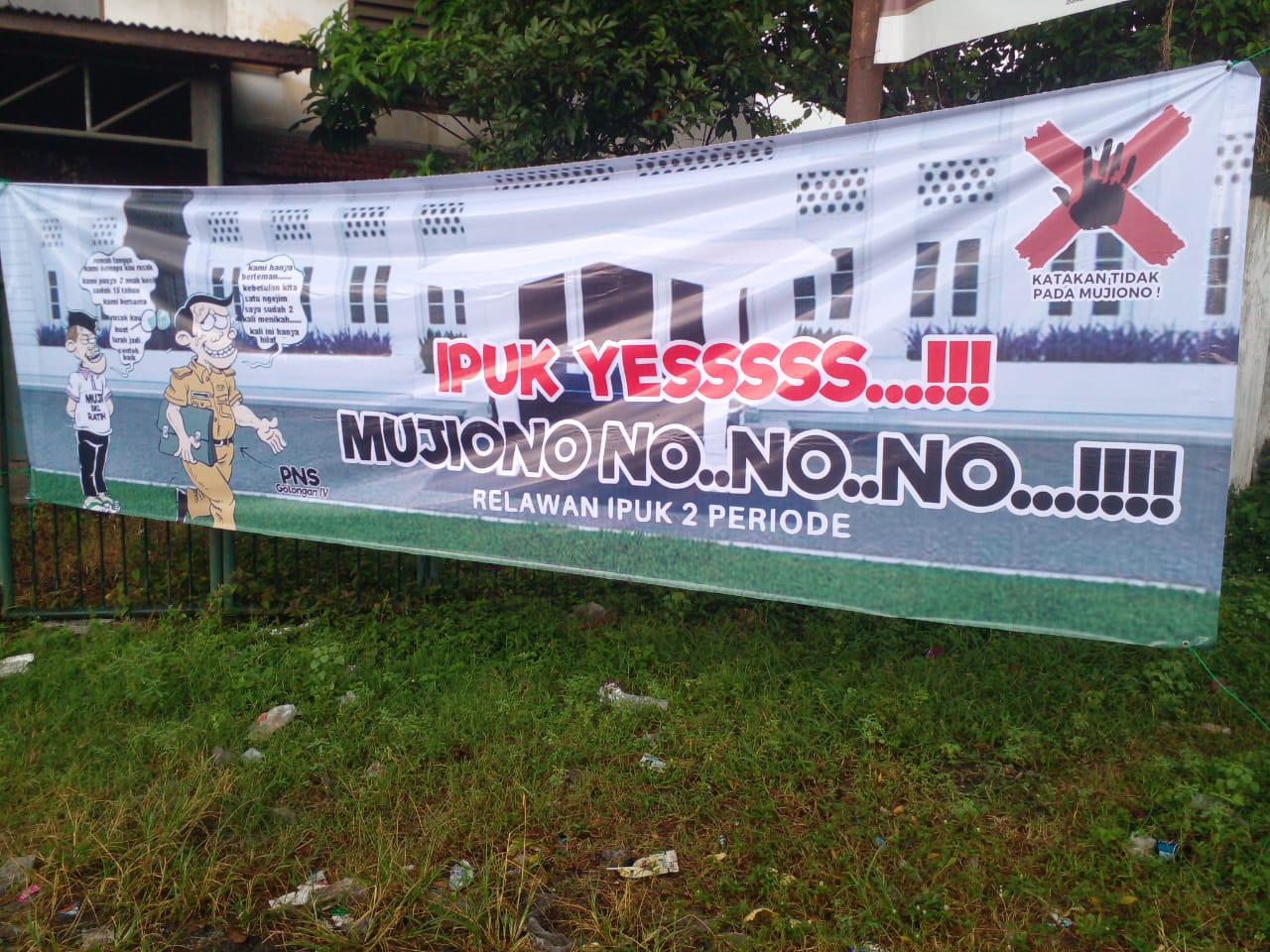 Banyuwangi – Spanduk bertuliskan “Ipuk Yes, Mujiono No” di Purwoharjo membuat warga sekitar terkejut dan banyak yang mendukung isi spanduk tersebut. Mereka menyatakan penolakan keras terhadap Mujiono sebagai calon wakil bupati yang akan mendampingi Ipuk Fiestiandani.