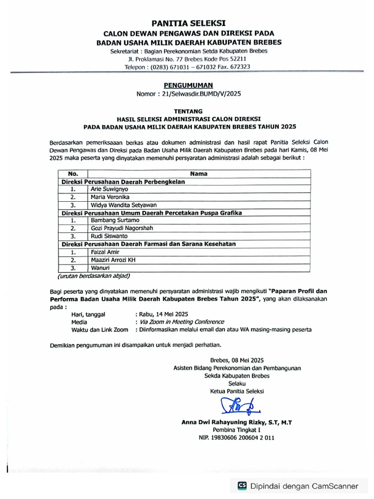 Media Kampung – Seleksi Direksi BUMD Jember 2026 resmi diumumkan hari ini, menampilkan hasil akhir serta keputusan perpanjangan masa jabatan beberapa pejabat strategis.