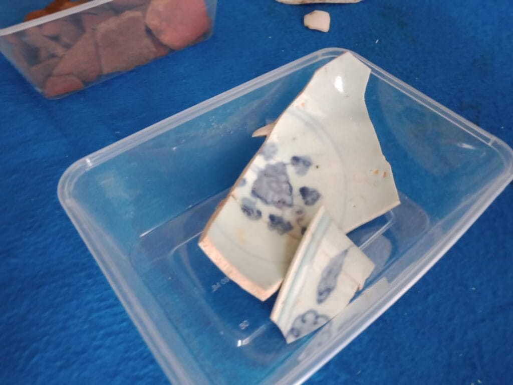 “Kita dapati dan ternyata kita temukan pada porselen dan gerabah kita perkirakan berusia tua. Ada pecahan gerabah dengan tehnik glasir, dan untuk pecahan porselen saya coba satukan dengan maksud mengetahui fragmen dan ternyata nyambung, saya perkirakan adalah mangkok, dan sudah teridentifikasi dari masa Ming Wanli dimasa 1573-1620 Masehi,”jelas H.Ilham Triadi MPd.,selaku anggota TACB Banyuwangi pada mediakampung.com, Selasa (2/5/2023).