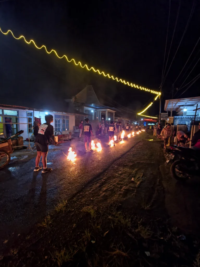 Sejak sekitar pukul 19.00 WIB, masyarakat memadati area kampung untuk mengikuti berbagai kegiatan budaya seperti pencak obor, kesenian kuntulan khas banyuwangi, hingga permainan meriam bambu.