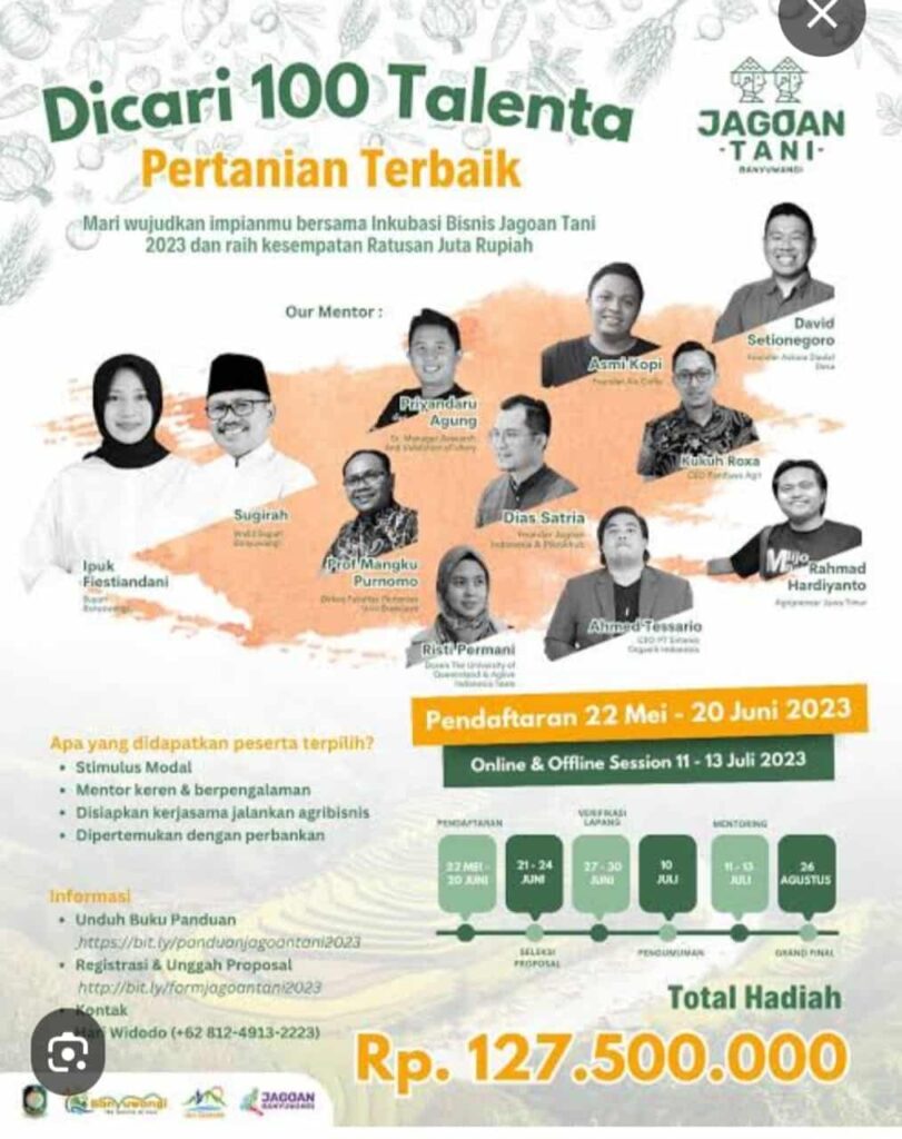 Selain itu, Pemkab Banyuwangi juga menyediakan mentor-mentor berpengalaman dalam bidang pertanian untuk membimbing para peserta. Hadiah senilai Rp. 127,5 juta juga telah disiapkan sebagai stimulus modal usaha bagi para pemenang.