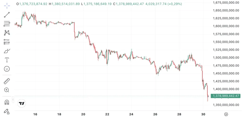 Di sejumlah platform perdagangan, pergerakan harga terlihat labil di rentang Rp1,35 miliar hingga Rp1,38 miliar. Level psikologis yang sebelumnya menjadi penopang kini kembali diuji.