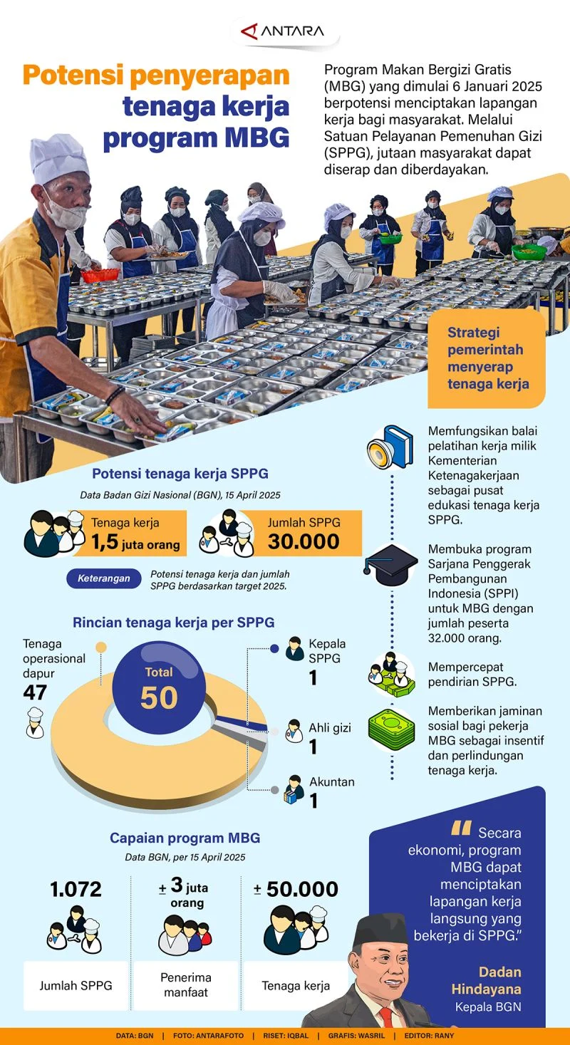 Program MBG merupakan inisiatif pemerintah yang menargetkan penciptaan lapangan kerja melalui investasi infrastruktur, industri, dan sektor produktif lainnya.