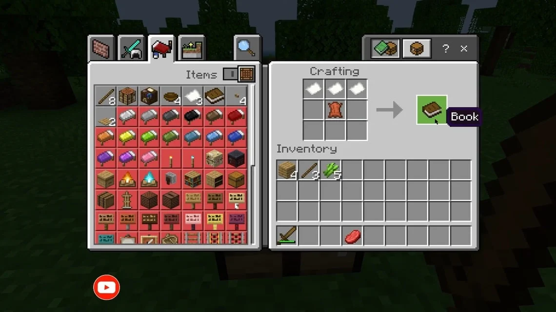 The book recipe combines three paper and one leather, a combination that unlocks bookshelves, enchanting tables, and writable books. Mastering this simple formula accelerates progression in survival mode.
