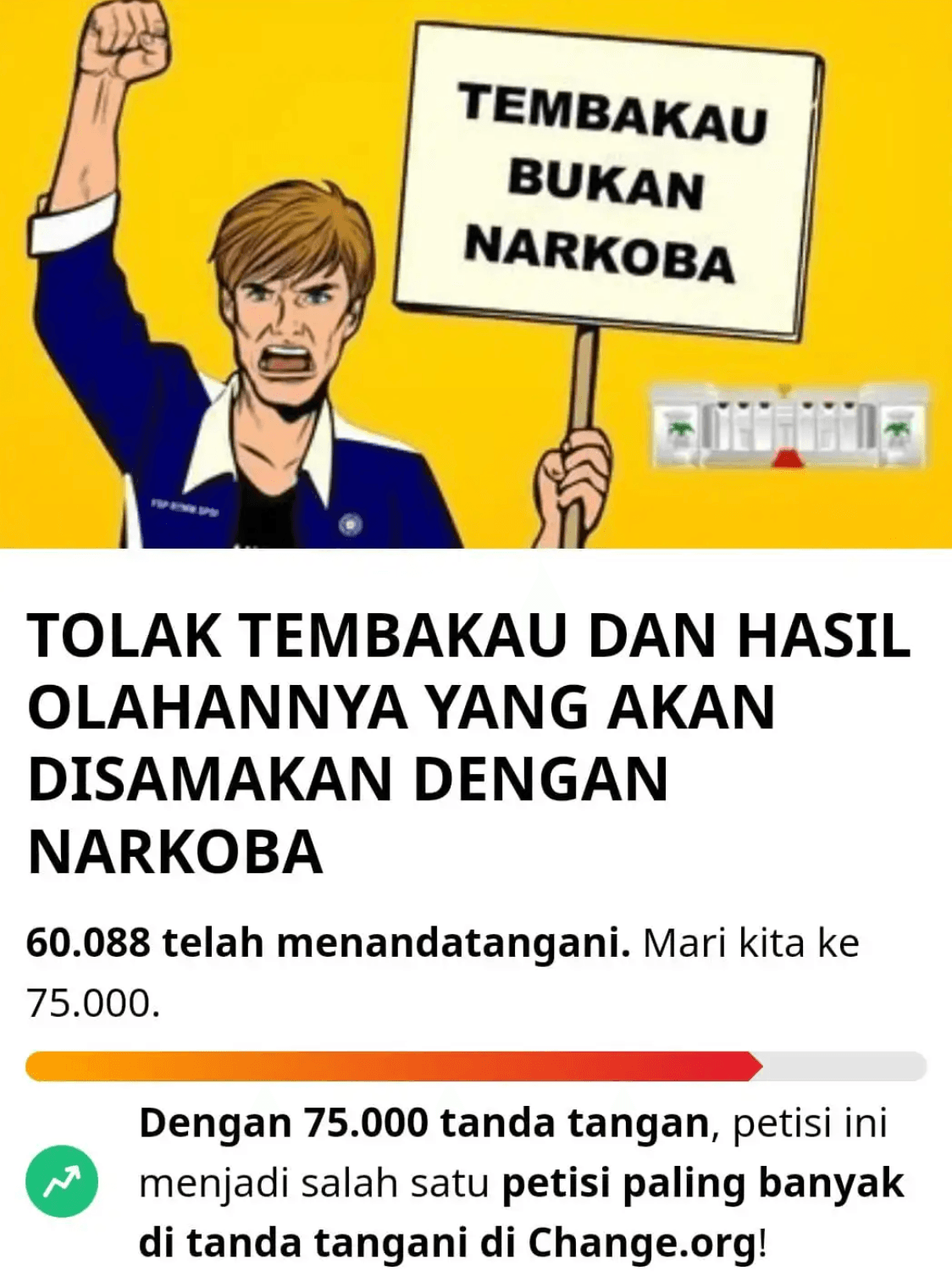 Para pekerja di sektor tembakau yang berusaha mencari nafkah secara legal merasa terhina dengan rencana penyetaraan tembakau dengan narkotika dan psikotropika ini. Produk tembakau merupakan komoditas utama nasional yang memberikan kontribusi signifikan terhadap penyerapan jutaan tenaga kerja di berbagai daerah dan pendapatan negara. Oleh karena itu, semua kebijakan terkait produk tembakau seharusnya melibatkan semua pemangku kepentingan terdampak agar hasilnya dapat dipertanggungjawabkan.