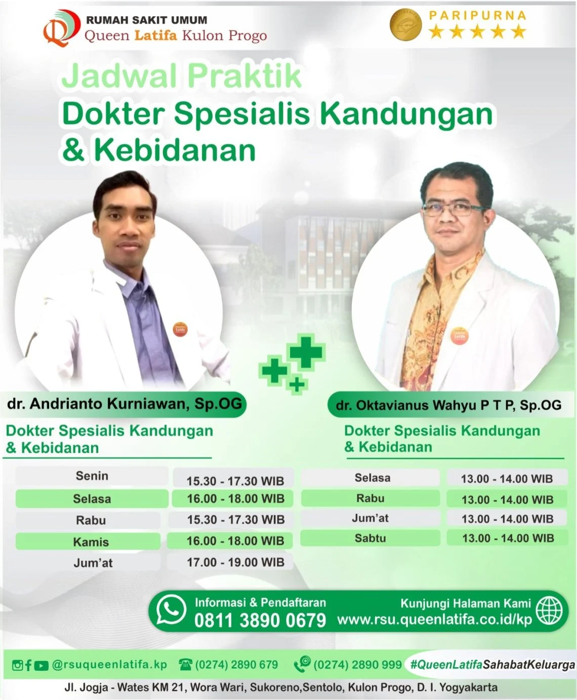 Perhatikan latar belakang pendidikan dokter kandungan, sertifikasi, serta pengalaman klinis. Rumah sakit yang menyediakan profil dokter secara transparan biasanya lebih dapat dipercaya.