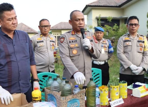 Media Kampung – Jajaran Polres Ogan Komering Ulu (OKU), Sumatera Selatan, berhasil menggerebek sebuah gudang penyimpanan dan pengoplosan bahan bakar minyak (BBM) ilegal di Kampung Talang Aman, Kelurahan Batu Kuning, OKU. Dalam penggerebekan yang dilakukan pada Minggu (30/7) malam, polisi berhasil menangkap pemilik gudang TO (37) dan seorang pembeli AY (28), yang merupakan warga Muara Enim.