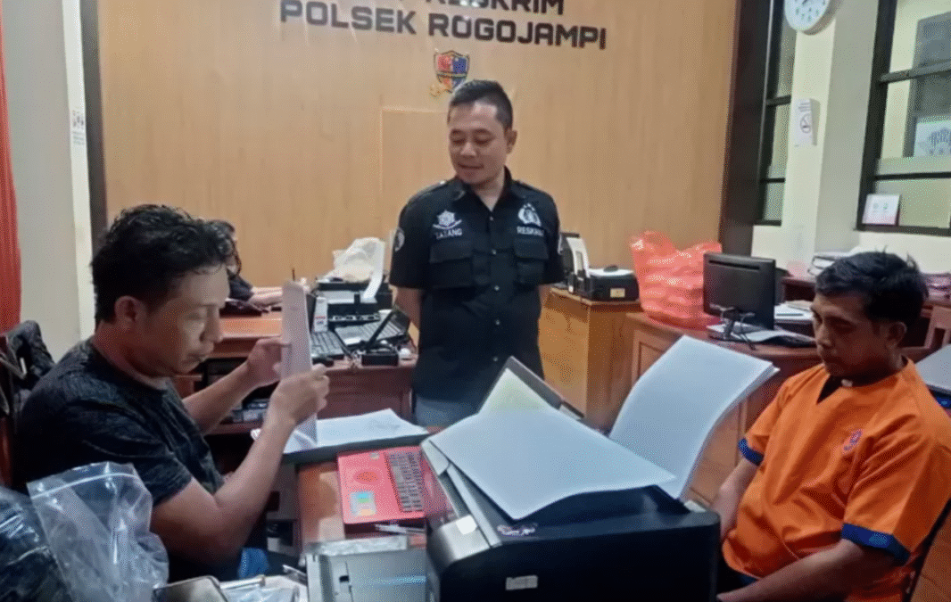 Banyuwangi – Kurang dari 24 jam sejak kejadian, anggota Reskrim Polsek Rogojampi, Kabupaten Banyuwangi, berhasil mengamankan seorang terduga pelaku pencurian. Terungkap bahwa tersangka, Nu’im Hayat (46) asal Desa Mangir, Kecamatan Rogojampi, diduga melakukan aksi pencurian terhadap sebuah ponsel.