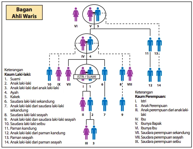 | Tanpa keturunan | Orang tua 50 %, pasangan 25 %, saudara 25 % |