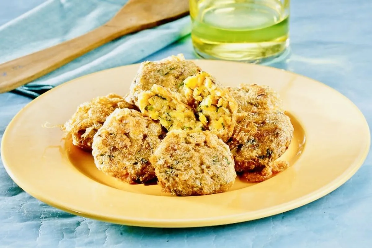 Perkedel merupakan lauk yang kerap dijumpai sebagai pelengkap nasi kuning, soto, atau sup. Nama makanan ini diyakini berasal dari kata Belanda frikadeller, yaitu bola daging cincang yang digoreng.