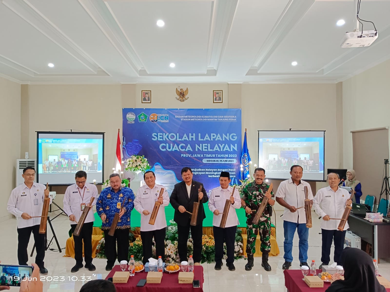 Sidoarjo, mediakampung.com – Badan Meteorologi, Klimatologi dan Geofisika (BMKG) Tanjung Perak menggelar Sekolah Lapang Cuaca Nelayan SLCN pada tanggal 19 Juni 2023 dengan tema “Mewujudkan nelayan dengan hasil tangkapan meningkat dan aman berbasis info cuaca”. Diikuti sebanyak 78 peserta yang terdiri dari nelayan tangkap, ketua kelompok nelayan dan penyuluh perikanan, mereka dibekali kemampuan untuk membaca informasi yang dikeluarkan oleh BMKG Tanjung Perak untuk merencanakan kegiatan di Laut.