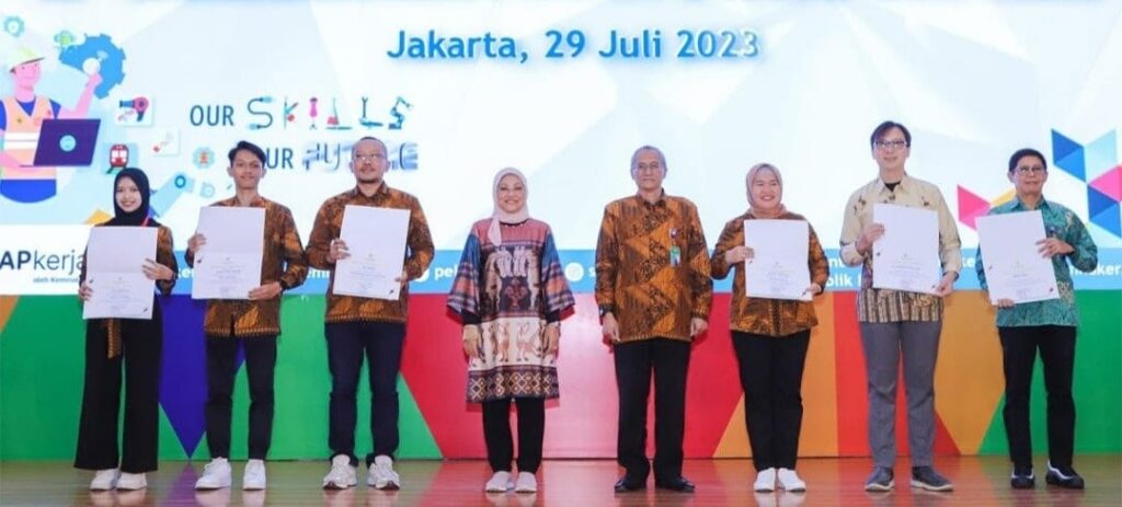 Media Kampung – Menaker Ida Fauziyah menyerahkan penghargaan kepada delegasi Indonesia yang berhasil meraih prestasi gemilang dalam ajang 13th WorldSkill ASEAN (WSA) di Singapura pada tahun 2023. Total 27 medali berhasil diraih oleh kompetitor Indonesia, yang terdiri dari 14 medali emas, 8 medali perak, 3 medali perunggu, dan 2 medali diploma.