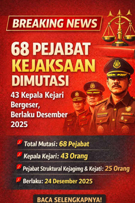 Mutasi dan rotasi itu tertuang dalam Surat Keputusan Jaksa Agung Republik Indonesia Nomor KEP-IV-1734/C/12/2025 tertanggal 24 Desember 2025. Surat keputusan tersebut ditandatangani oleh Jaksa Agung Muda Bidang Pembinaan, Hendro Dewanto.