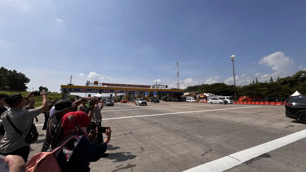 Pada pukul 13.20 WIB, sembilan gerbang tol utama sudah beroperasi, antrian kendaraan memanjang hingga ratusan meter.