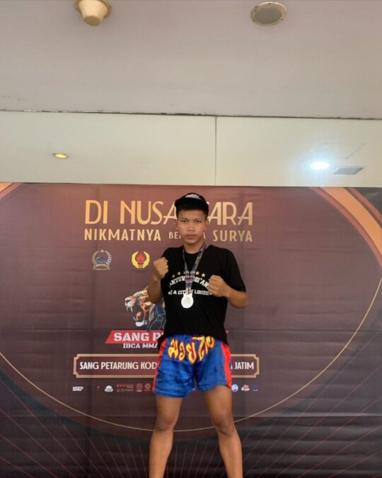 Banyuwangi – Kabar membanggakan datang dari dunia olahraga! Sanjaya Dwi Pangestu Langkirno, siswa SMK Muhammadiyah 8 Siliragung (SMK Models) Banyuwangi, berhasil menorehkan prestasi gemilang di Turnamen IBCA MMA Piala Dandim 0833 di Malang. Setelah melalui serangkaian pertandingan yang sengit, Sanjaya berhasil meraih medali silver, mengharumkan nama sekolah dan membuktikan bahwa siswa SMK juga bisa berprestasi di bidang olahraga.