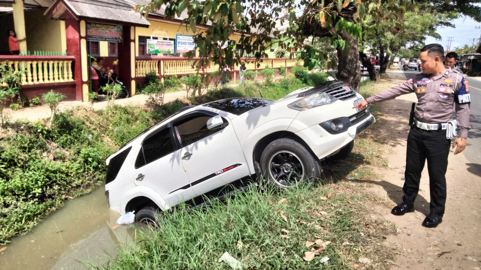 Media Kampung – 30 Maret 2026 | Sebuah Toyota Fortuner putih yang mengangkut rombongan pemudik terperosok ke saluran irigasi di Kabupaten Okutama, Jawa Barat, pada sore hari Rabu.