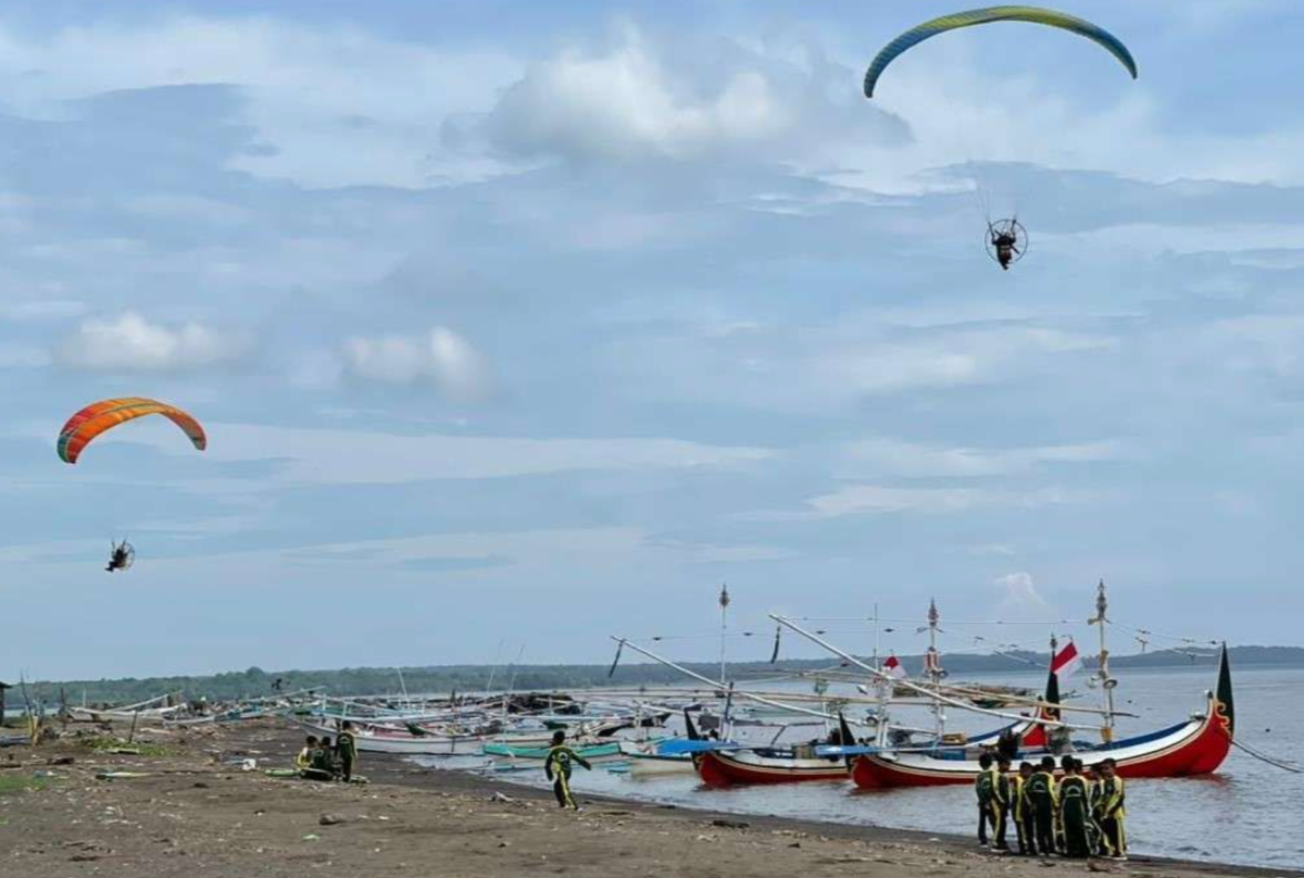 Banyuwangi – Langit Pantai Bimorejo di Kecamatan Wongsorejo, Banyuwangi, dipenuhi atraksi memukau dari penerbangan paramotor, paratrack, dan aeromodeling pada Sabtu (11/1/2025). Uji coba penerbangan yang dilakukan oleh para pecinta aeromodeling ini menjadi tontonan menarik bagi warga sekitar dan wisatawan yang datang menikmati keindahan pesisir pantai.
