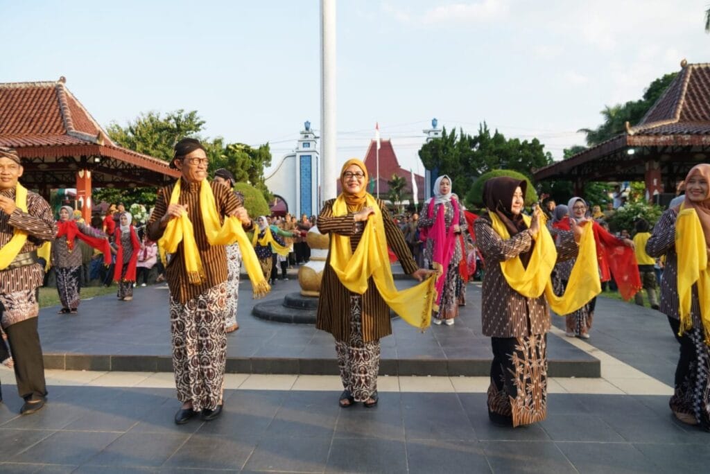1000 penari itu, menampilkan tari-tarian seperti tari Juminten yang menggambarkan tentang batik, tari Jaranan Safitri, Gambyong Mari Kangen, dan Magetan Kumandang. Saat menari, nampak Bupati, Wabup, Sekda, Kadikpora gayeng ikut menari dengan lemah gemulainya dan penuh semangat.
