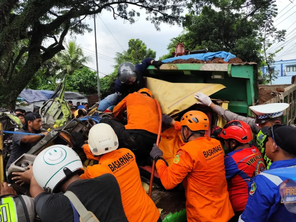 Korban diketahui merupakan sopir truk bermuatan pasir batu (sirtu) yang terjepit di dalam kabin akibat benturan keras.