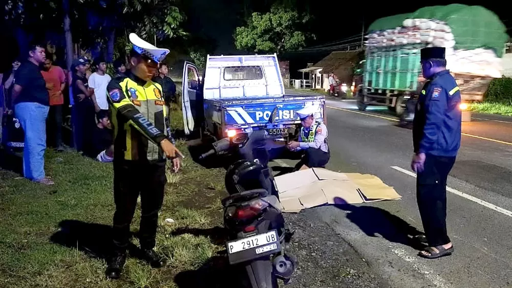 Pengendara sepeda motor Honda Beat P 2912 UB, Yena Yuanita (46), warga Desa Sukojati, Kecamatan Kabat, meninggal dunia di lokasi setelah menabrak pejalan kaki.