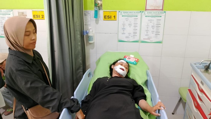 Korban bernama Muhammad Afzal (7) mengalami benjol di kepala belakang dan sempat pusing. Sementara Tiara Wahyu Ratulangi (12) mengalami luka robek di bibir serta memar di pipi dan mata kanan.