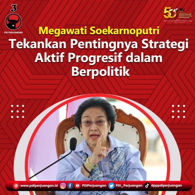 Megawati juga menekankan pentingnya mengadopsi strategi aktif progresif dalam berpolitik. Ia memberikan contoh pada kongres PDI Perjuangan tahun 1993, di mana ia secara aktif dan progresif mengambil momentum untuk menyatakan dirinya sebagai ketua umum partai, meskipun secara de jure belum memperoleh jabatan tersebut.