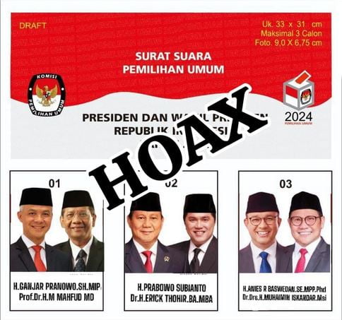 Dalam gambar yang beredar itu, tertulis sebagai “Draft Surat Suara Pemilihan Umum Presiden dan Wakil Presiden RI Tahun 2024”.