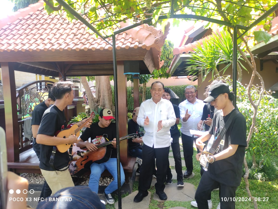 Banyuwangi, Jawa Timur – Suasana meriah tercipta di kediaman H. Mujiono, calon wakil bupati Banyuwangi, saat Relawan Teman Teman Setia (TTS) yang dipimpin oleh Kang Bowo dan Kang Yani menggelar silaturahmi dan dukungan, Kamis (10/10/2024). Kehadiran para relawan semakin spesial dengan kejutan penampilan sekelompok musisi tradisional ala pengamen jalanan.