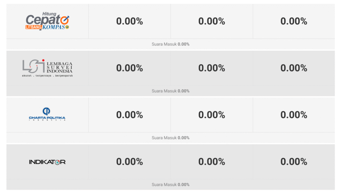 Selain real count, kamu juga bisa melihat hasil quick count dari lembaga survei berikut: