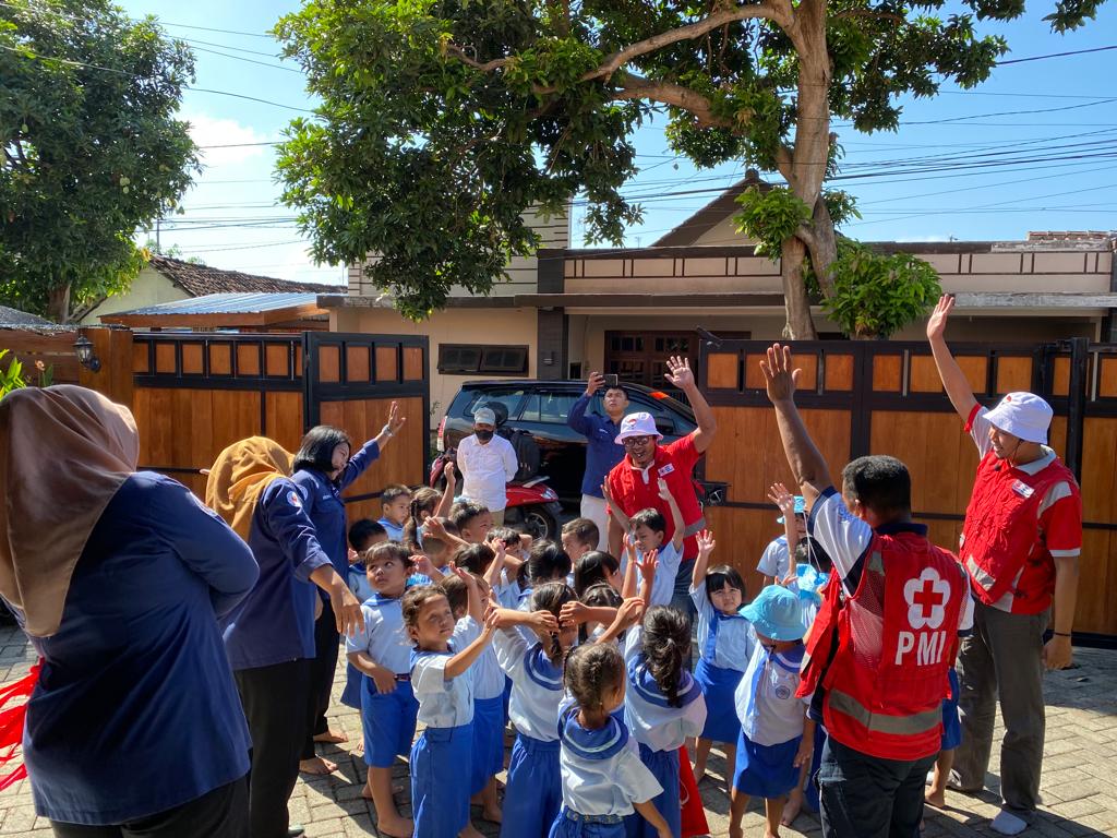 Banyuwangi, mediakampung.com โ PMI (Palang Merah Indonesia) Banyuwangi bekerjasama dengan PAUD-TK Teratai Kelurahan Tuakangkayu Banyuwangi, melakukan sosialisasi dan simulasi kesiapsiagaan bencana. Simulasi tersebut dikenalkan sejak dini kepada sebanyak 60 anak-anak beserta 12 orang guru, pada Selasa, (23/5/2023).