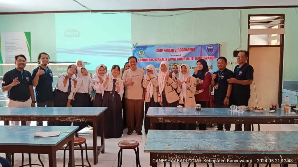 Banyuwangi – Komunitas Jurnalis Jawa Timur (KJJT) Wilayah Banyuwangi menggelar kegiatan literasi yang bertujuan untuk memberikan pembekalan dasar jurnalistik kepada pelajar SMPN 2 Rogojampi, Selasa (21/5/2024). Kegiatan ini diadakan dengan tujuan meningkatkan kemampuan menulis berita para siswa.