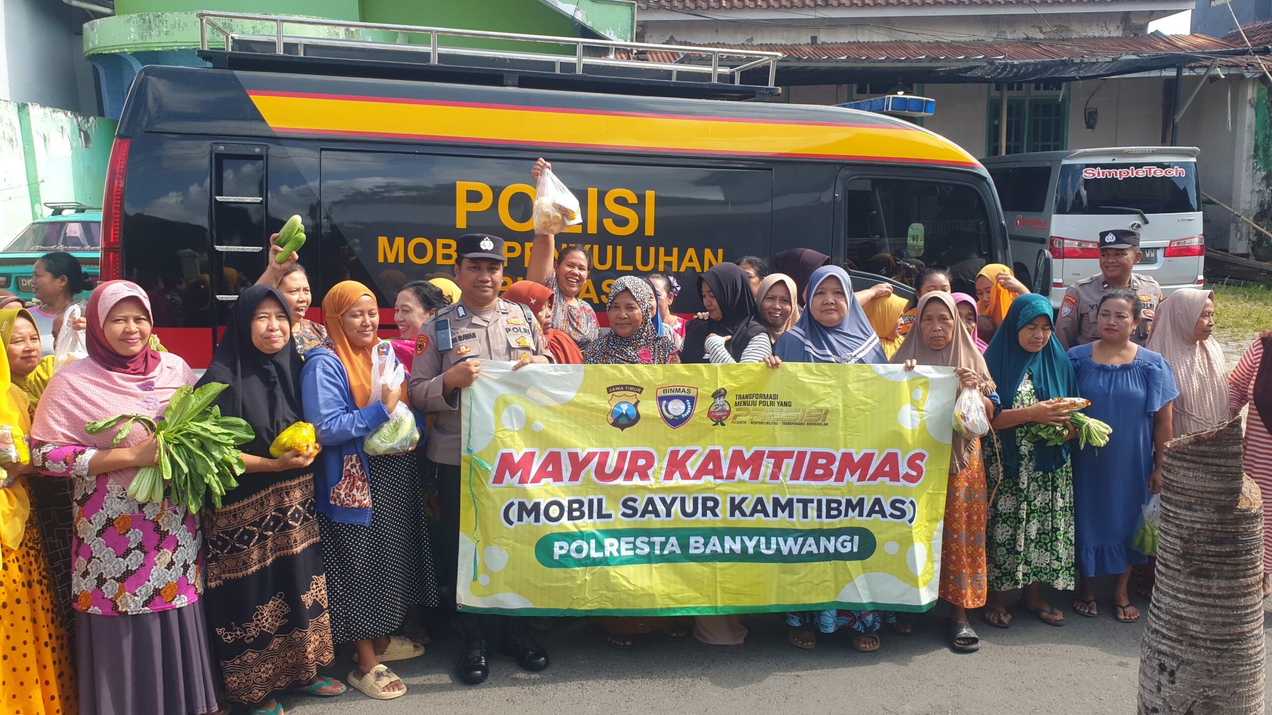 Setiap hari Jumat, Mobil Sayur Kamtibmas berkeliling ke berbagai wilayah di Banyuwangi untuk mendistribusikan sayuran segar kepada warga yang membutuhkan sembari menyampaikan pesan-pesan kamtibmas.