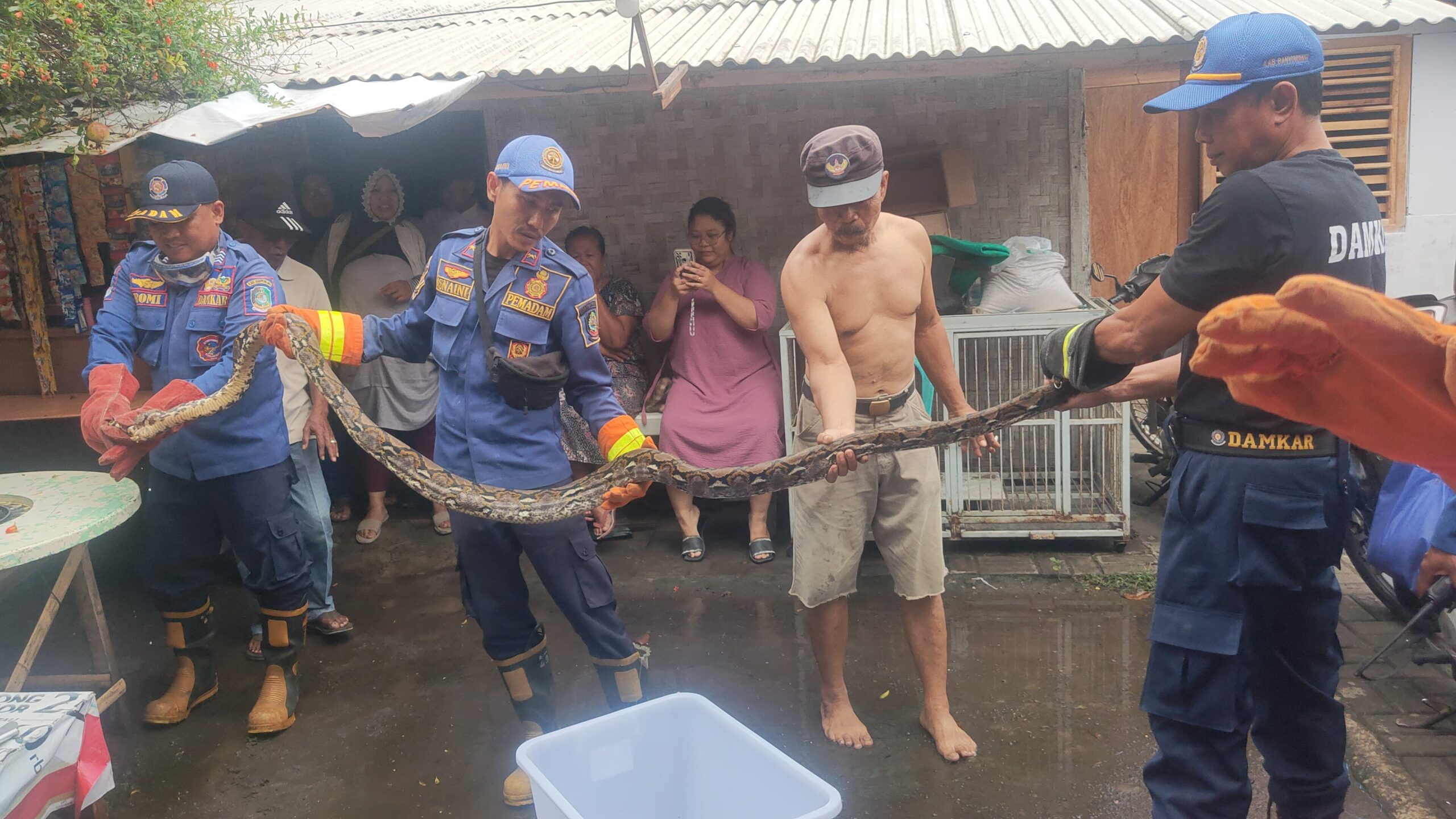 “Tim Rescue melakukan evakuasi ular phyton yang berada di bawah meja dapur rumah,” tulis laporan Damkarmat.