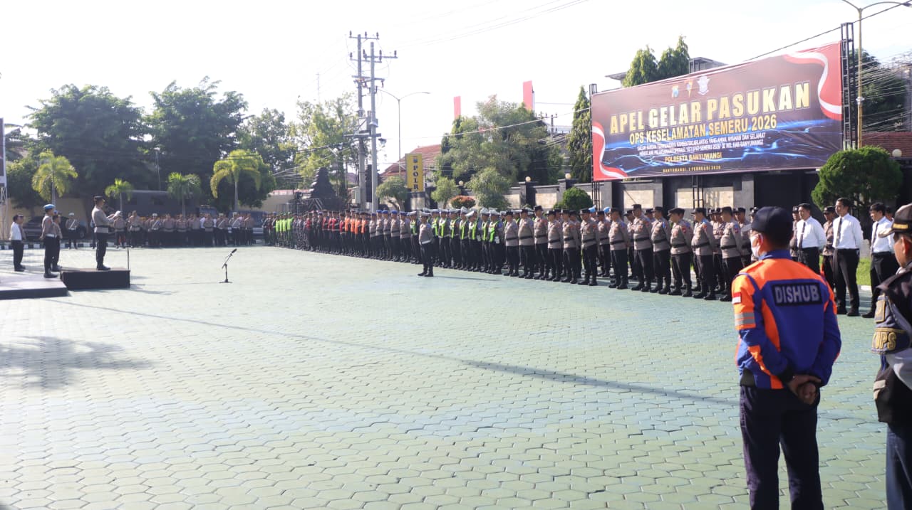 Apel gelar pasukan dipimpin Wakapolresta Banyuwangi AKBP Teguh Priyo Wasono yang membacakan amanat Kapolda Jawa Timur. Barisan peserta apel terdiri dari personel gabungan TNI–Polri, Dinas Perhubungan, Satpol PP, serta unsur pendukung lainnya.