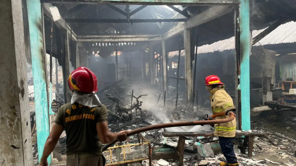 Banyuwangi, MediaKampung.com – Kebakaran melanda kawasan Pasar Loak Tiga Berlian di Lingkungan Ujung, Kelurahan Kepatihan, Banyuwangi, Senin (9/2/2026). Peristiwa yang terjadi sekitar pukul 12.11 WIB itu menghanguskan lima kios pedagang.