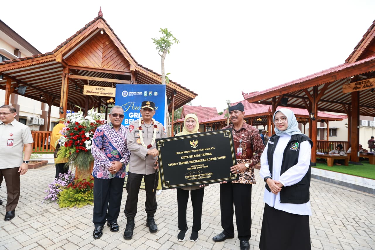 MediaKampung.com, Banyuwangi – Gubernur Jawa Timur Khofifah Indar Parawansa meresmikan sejumlah sarana baru di SMAN 2 Taruna Bhayangkara Banyuwangi, Sabtu (28/2/2026). Peresmian ini menjadi bagian dari program rehabilitasi dan revitalisasi sekolah oleh Pemprov Jatim.