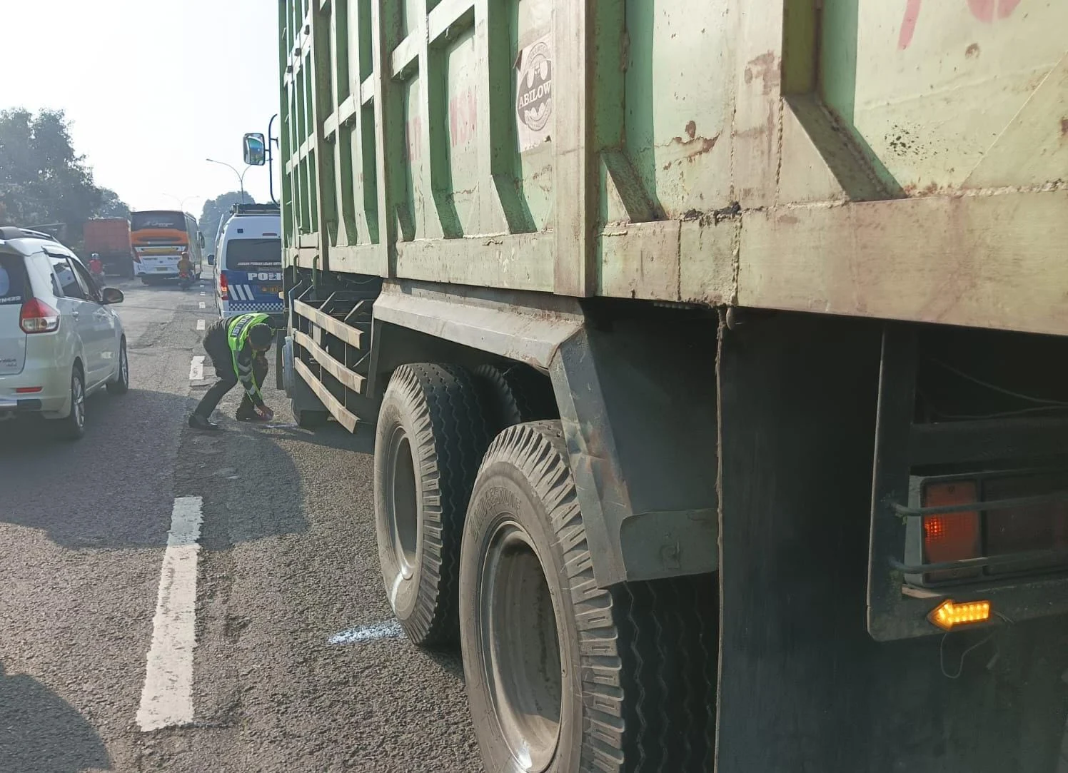 Truk yang terlibat adalah Mitsubishi berplat H 1392 HG dan saat itu berhenti menghadap ke utara.