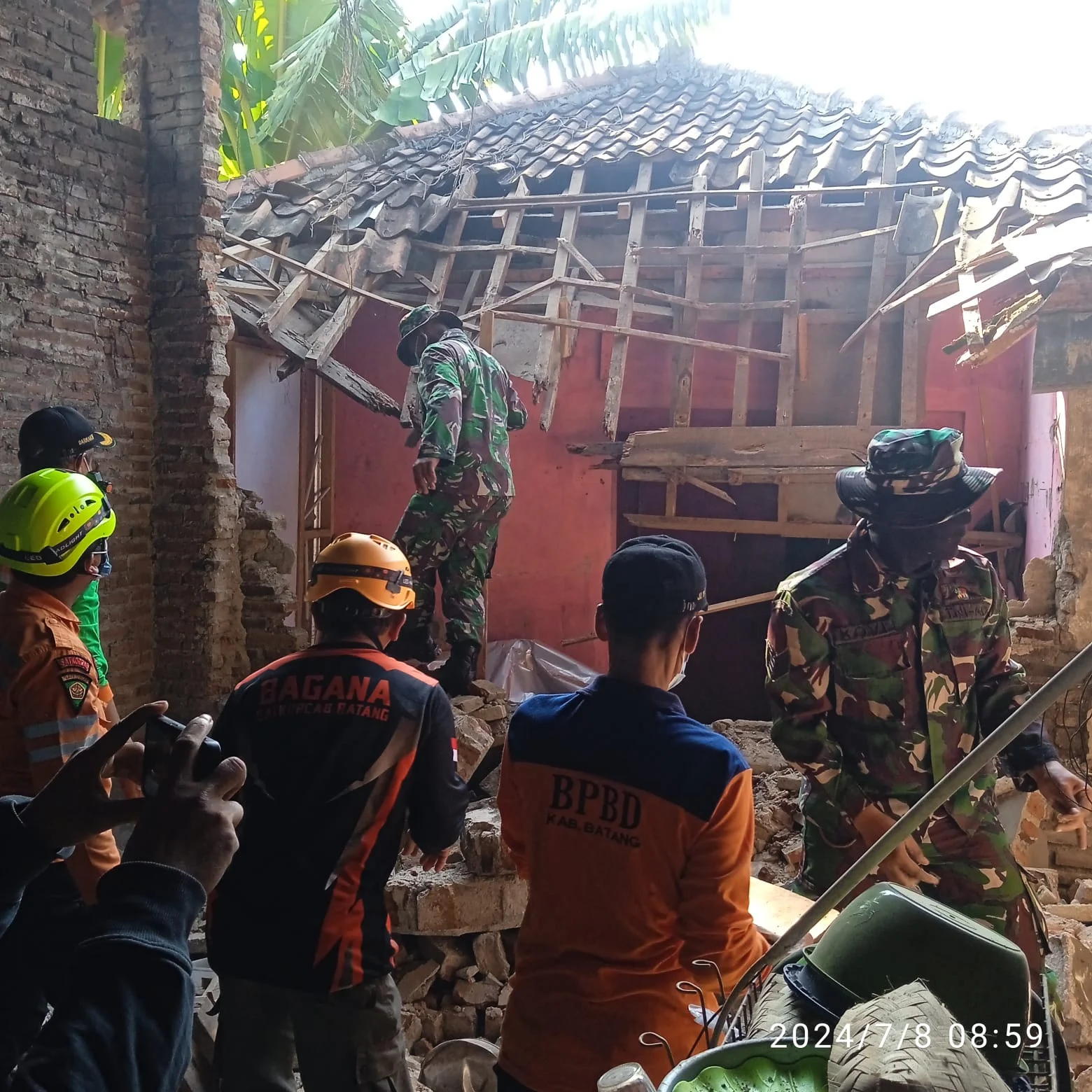 Tim BNPB bersama aparat setempat terus melakukan inspeksi bangunan yang rusak dan melarang penduduk kembali ke rumah yang belum dinyatakan aman.