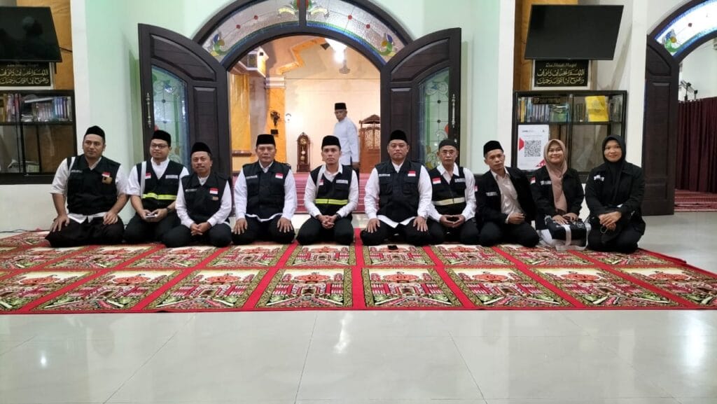 Banyuwangi, mediakampung.com – Panitia takmir masjid Baiturrohim Desa/Kecamatan Rogojampi Kabupaten Banyuwangi secara resmi melakukan pelepasan / pemberangkatan terhadap 10 orang petugas haji, yang terdiri dari ketua kloter, PPIHI, Dokter beserta tenaga kesehatan (nakes), pada Rabu, (14/6/2023) sekira pukul 19.30 wib, bertempat di Masjid Baiturrohim Rogojampi.