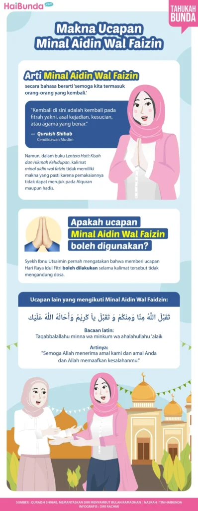 Doa “Minal Aidin Wal Faizin” sering diucapkan menjelang Idul Fitri. Meskipun banyak yang mengira artinya “Mohon Maaf Lahir dan Batin”, sebenarnya doa ini berarti “Semoga kita termasuk orang‑orang yang kembali (ke fitrah) dan yang meraih kemenangan”. Kata “kembali” mengisyaratkan kembali ke keadaan suci seperti bayi, sementara “kemenangan” menandakan keberhasilan menaklukkan hawa nafsu.