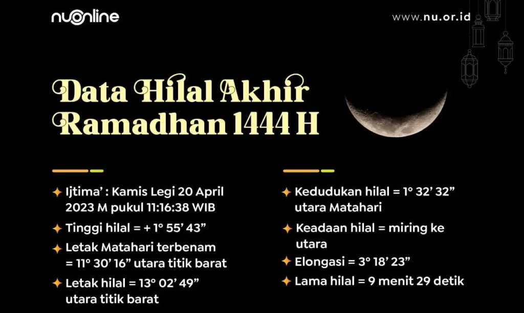 Media Kampung – 18 April 2026 | Lembaga Fiqih PBNU (LF PBNU) mengumumkan data hilal awal Dzulqa’dah 1447 H yang diperkirakan jatuh pada 19 April 2026.