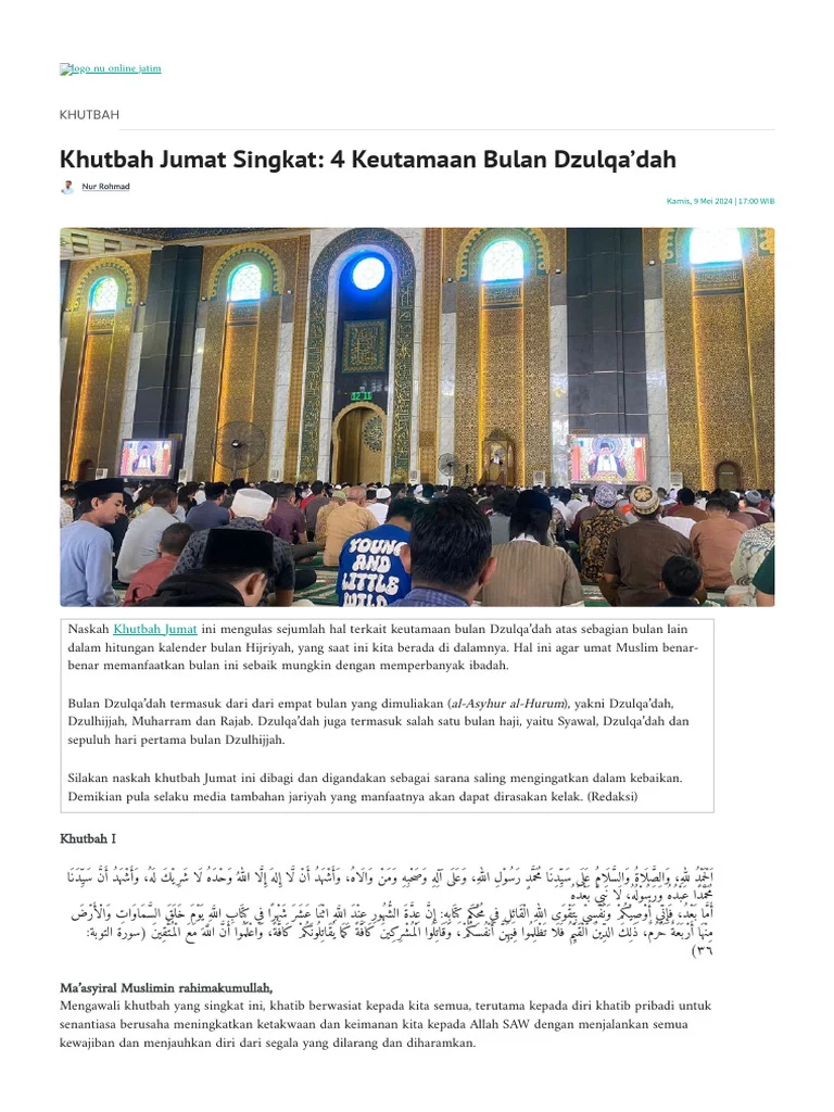 Media Kampung – Khutbah Jumat Dzulqadah menekankan pentingnya perdamaian di bulan suci, mengingat umat Islam harus menjauhi pertikaian dan menyebarkan kasih secara luas.