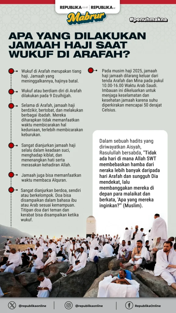 Media Kampung – Wukuf di Arafah merupakan rukun utama haji yang menandai puncak ibadah umat Islam, sehingga setiap jamaah harus memanfaatkan waktu tersebut secara optimal. Pada tanggal 9 Zulhijah, ribuan jemaah berkumpul di padang Arafah untuk melaksanakan rangkaian ritual yang telah ditetapkan.