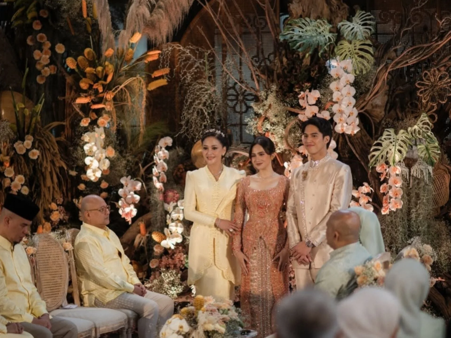 “Kami memang suka mengobrol tentang mereka saat arisan, jadi hadir di sini terasa seperti melengkapi kebahagiaan mereka,” kata Aurel Hermansyah. Pernikahan tersebut juga dihadiri artis-artis lain seperti Maia Estianty, Mulan Jameela, dan El Rumi yang tampil dalam kebaya kutubaru maroon.