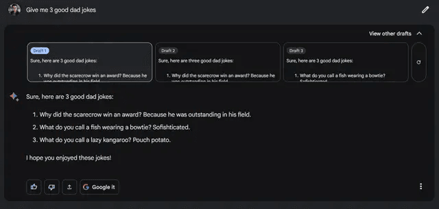 Tidak hanya itu, Google Bard juga memperkenalkan fitur baru yang memudahkan pengguna dalam berbagi hasil percakapan. Pengguna sekarang dapat dengan mudah mengexport percakapan dengan Bard ke layanan populer seperti Google Docs dan Gmail. Fitur ini memungkinkan pengguna untuk berbagi hasil percakapan dengan mudah dan menggunakannya dengan lebih fleksibel sesuai kebutuhan mereka.