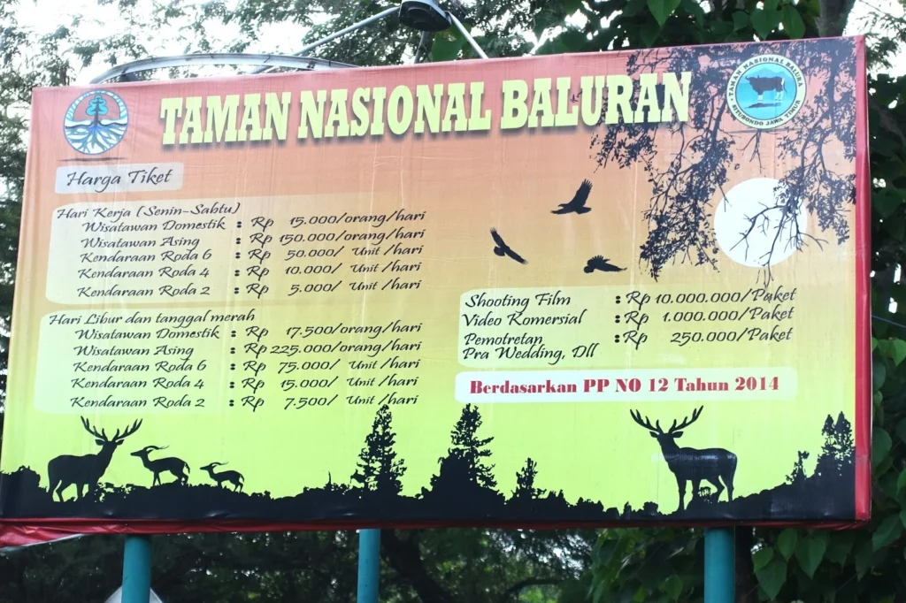 Berikut adalah rincian harga tiket masuk taman nasional baluran per 2024 yang dikeluarkan oleh Pengelola Taman Nasional Baluran (Baluran Management). Tarif dapat berubah tergantung kebijakan pemerintah atau musim liburan, jadi sebaiknya cek kembali sebelum berangkat.
